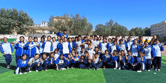 多彩课堂点亮成长之路。地理课上,支教老师举起一朵棉花作为“气候坐标”,生动解读经纬线与农作物生长的关联,让课本上抽象的知识点沾满泥土的芬芳;绿茵场上,体育支教老师将趣味游戏融入训练,哨声响起,孩子们欢呼着冲向跑道,奔跑的身影成为校园里最鲜活的风景。课后,孩子们塞到老师手中的奶疙瘩、写满稚嫩字迹的感谢小纸条,巷口飘来烤包子的阵阵香气,更是拼凑成支教旅程中最温暖的记忆碎片。