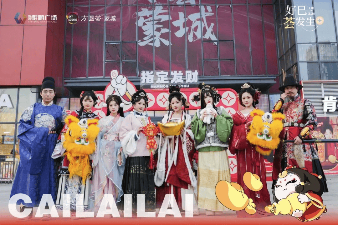 活动内容:组织明制汉服秀、火壶表演、“福”在万达、新春年货大集、醒狮开门红、帅财神贺新春等活动。