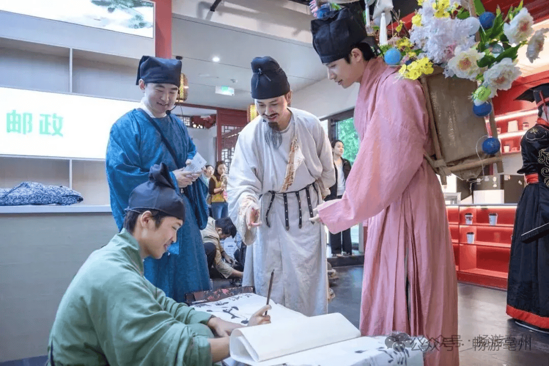 活动内容:开展NPC互动活动,演员扮演李白持酒壶、竹简巡游,吟诵改编版亳州主题诗句(融入药都、温泉元素),随机与游客“飞花令”对诗,让游客感受诗词的魅力,增添节日的文化氛围。