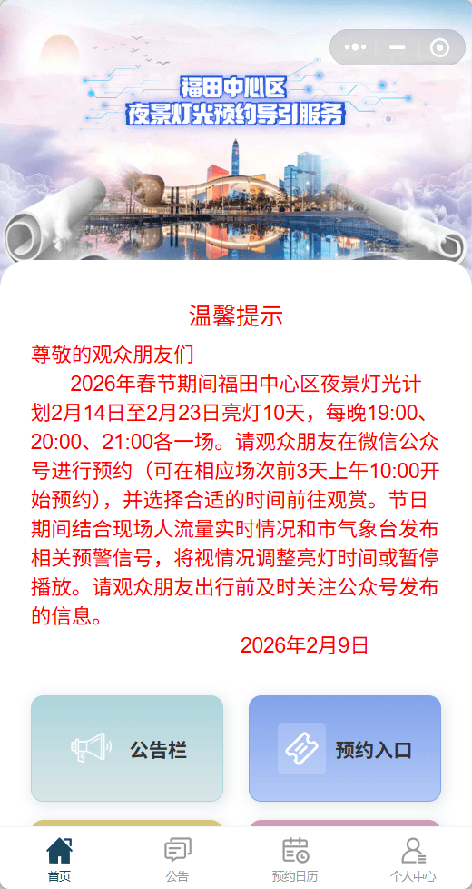 ●深圳市民中心春节灯光秀亮灯时间正式公布:2月14日至2月23日持续亮灯10天!需提前预约观赏。