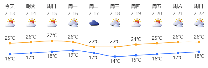 深圳今日多云间晴天;气温16-25℃;东风2-3级;相对湿度50%-90%。