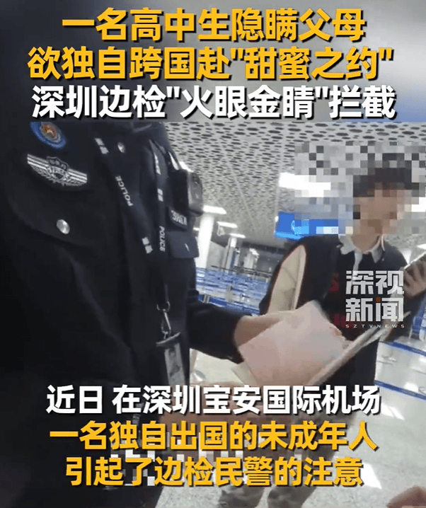 ● 近日,一名高中生隐瞒父母欲独自出国见“网恋女友”,深圳边检“火眼金睛”拦截。