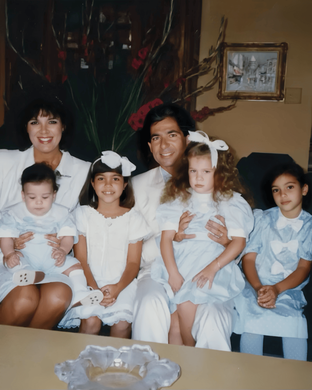 第一任老公罗伯特-卡戴珊是名律师,就是帮O·J·辛普森打赢命案的那位。两人婚后生了四个孩子,考特尼、金、科勒和儿子罗伯。靠着这段婚姻,她第一次进入上流社会。▼