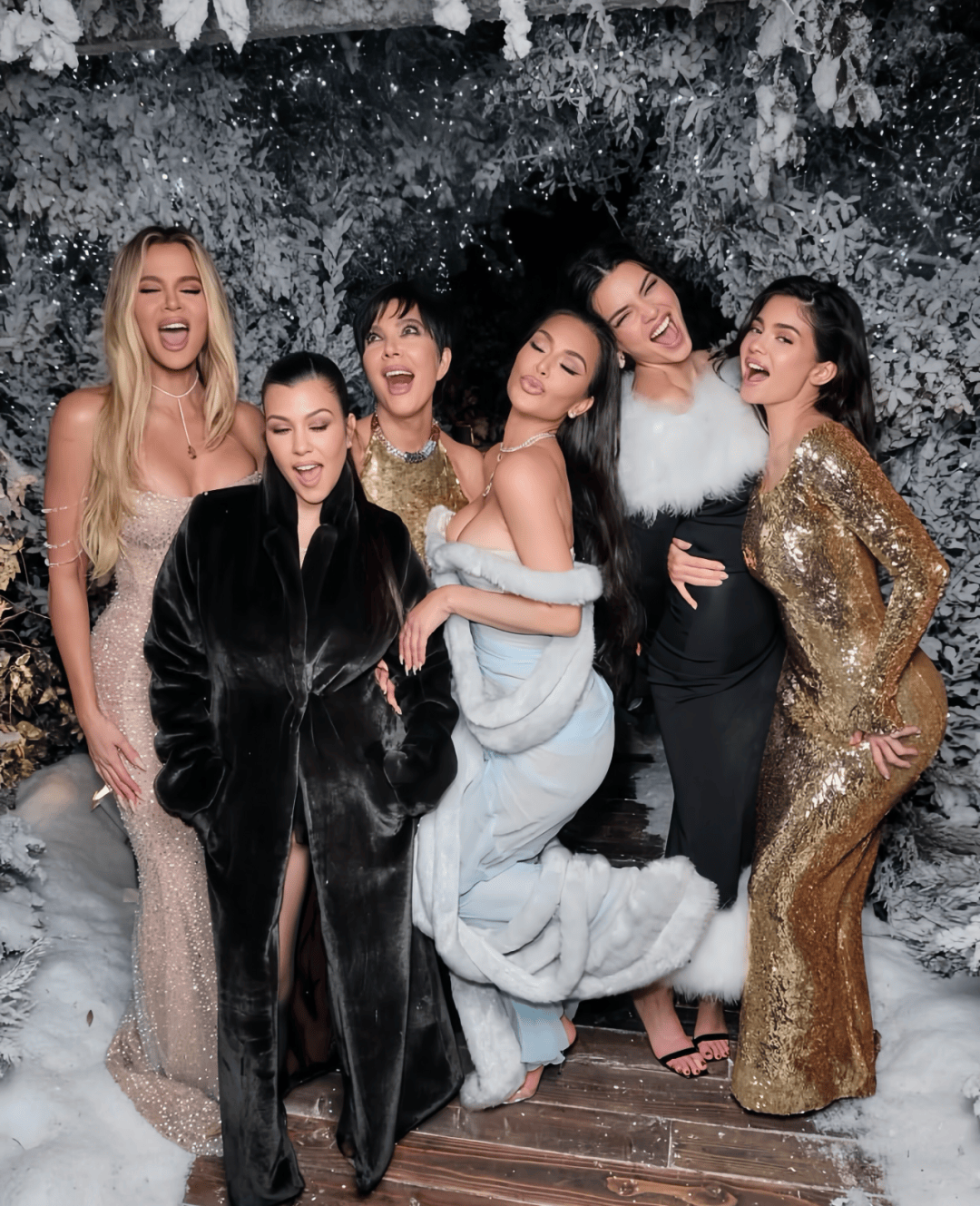 而她那几个全世界最会赚钱的女儿金-卡戴珊、肯豆、凯莉、考特尼和科勒,都美美亮相。站在她身边,就像是“太后”带着五朵会印钞的金花出巡。(谁还记得她有个毫无存在感的儿子?)▼